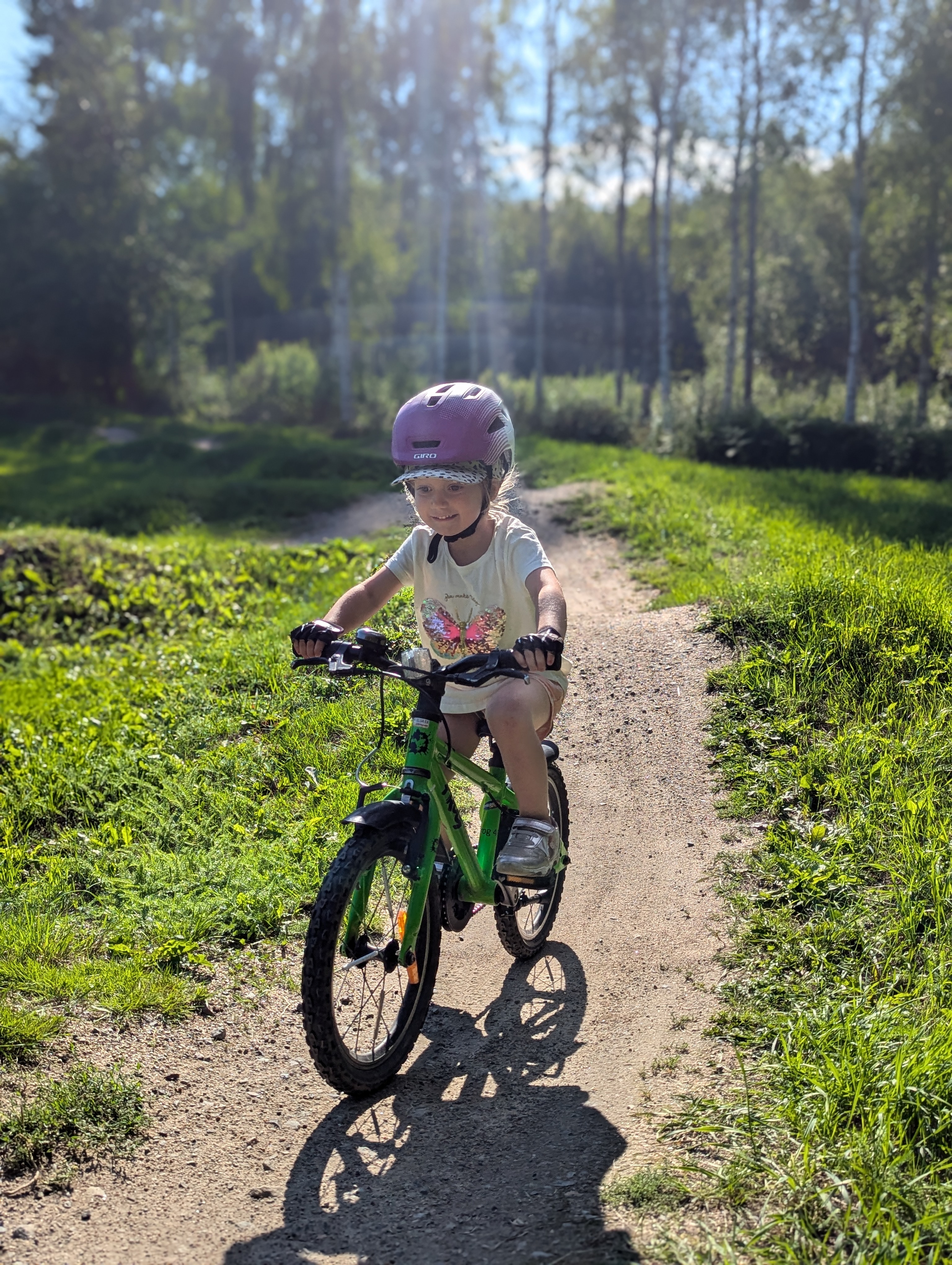 4-åringen är grym hon med – hon började trampcykla strax efter att hon fyllde fyra, det underlättar att ha ett större syskon. Det har blivit en hel del pumptrack och grusväg för henne också. Numera cyklar hon också snabbare än någon vuxen orkar springa 😉