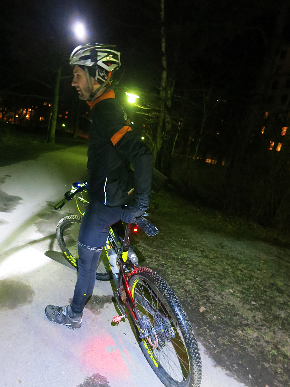 För den som undrar – det gick utmärkt att köra MTB med vanliga däck på snön. Lite lägre tryck bara så rullar det fint. Inga problem idag med Maxxis Ikon 2,2″, slanglöst.