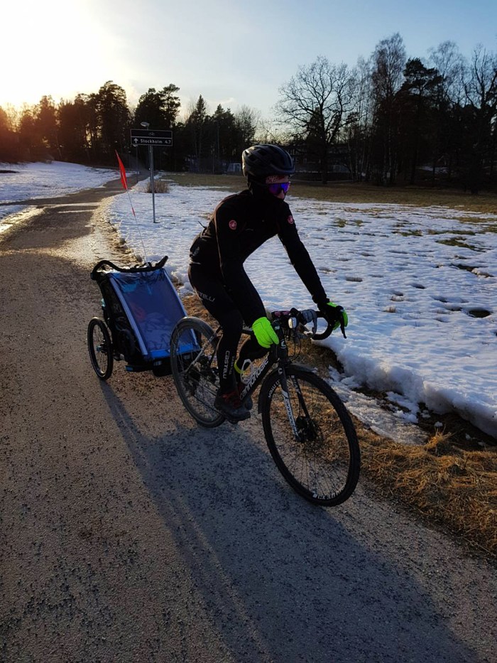 Med lite jäklar anamma och förståelse i familjen så går det att få till träning för både mamma och pappa. Med cykelvagn blir det också lite lättare.