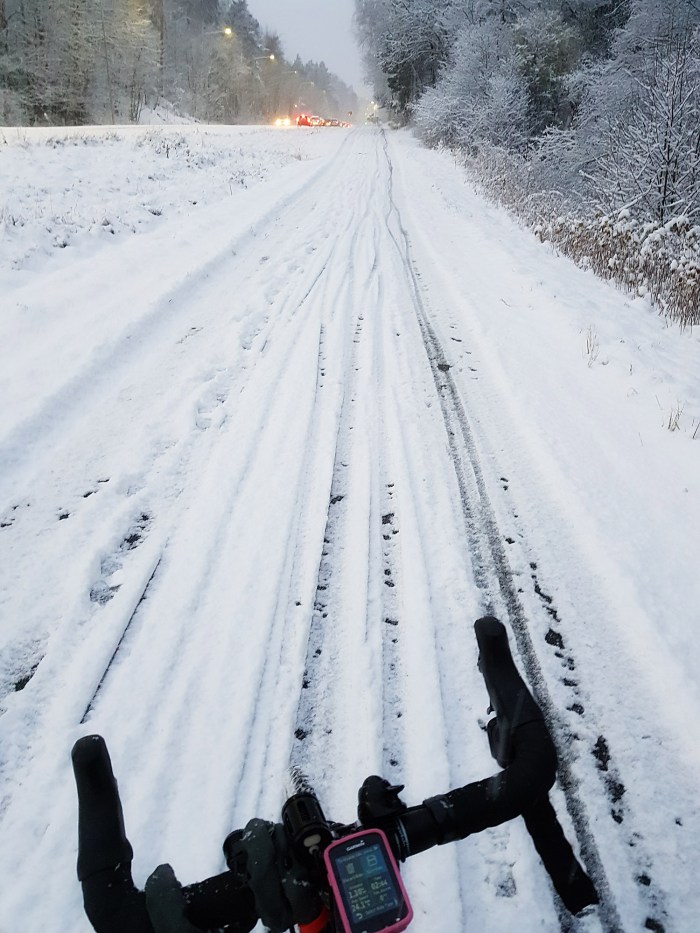 Träningen då? Jo – vi har flyttat sedan i somras och jag har dubbelt så lång pendlingsväg till jobbet mot tidigare. Jag har cyklat till jobbet sedan 2010 och haft turen att ha ca 10 min med cykel, och det har jag alltid cyklat i vanliga kläder. Nu blir det 20 min och jag har kommit fram till att det är ombytt till cykelkläder som gäller. Varje dag får jag därmed ”gratis” ca 16 km och 40 min cykling. På min cykelväg har jag dessutom rejäla backar och under vintern med dubbdäck blir det än tyngre.