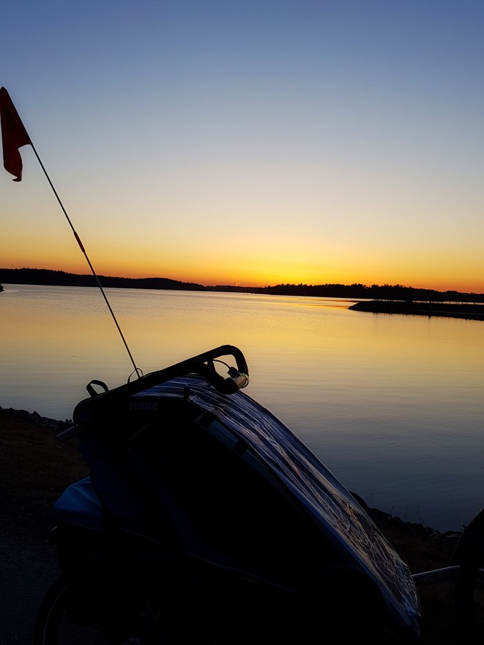 Efter ett gäng svordomar, missnöjd bebis och allmän misär, kom vi så småningom ut på våra cyklar. Sen kvällssol och riktigt kyligt! Lillkillen somnade direkt medan mamma och pappa försökte att inte frysa sönder. Klar häftig känsla med cykelvagn, men också ”var det inte mer än så här?”-känsla. Den skulle försvinna.